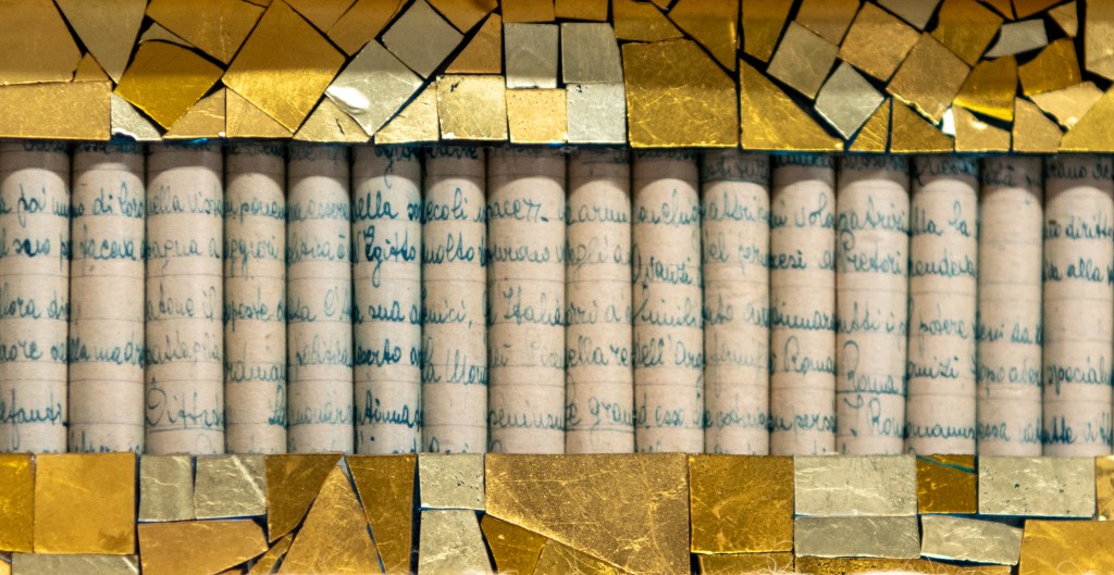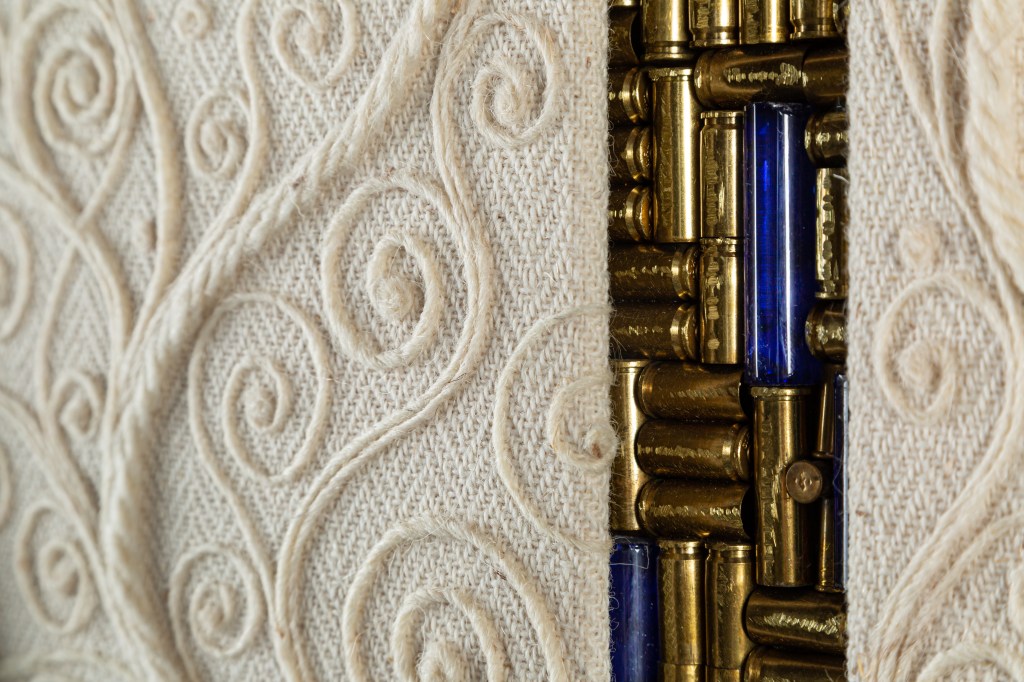 Photogallery Untitled – 2024, tecnica mista, lana, orbace, bossoli, cm 45x45x5. Particolare di Untitled – 2024 Particolare di Untitled – 2024 Condividi: Fai clic per condividere su Facebook (Si apre in una nuova finestra) Facebook Fai clic per condividere su WhatsApp (Si apre in una nuova finestra) WhatsApp Mi piace Caricamento...